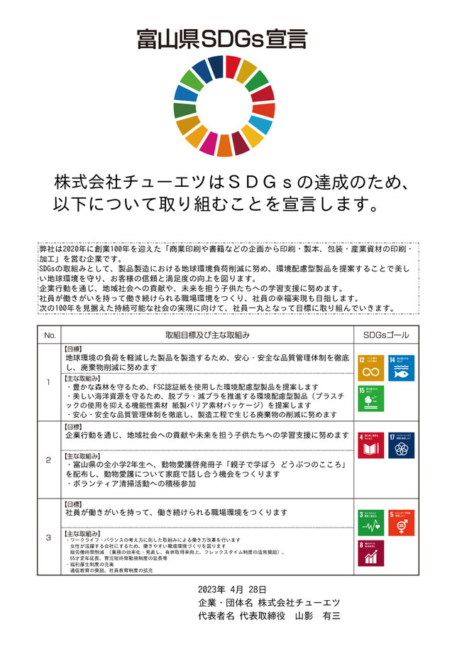 チューエツのSDGs取組内容についてパンフレットを作成しました。